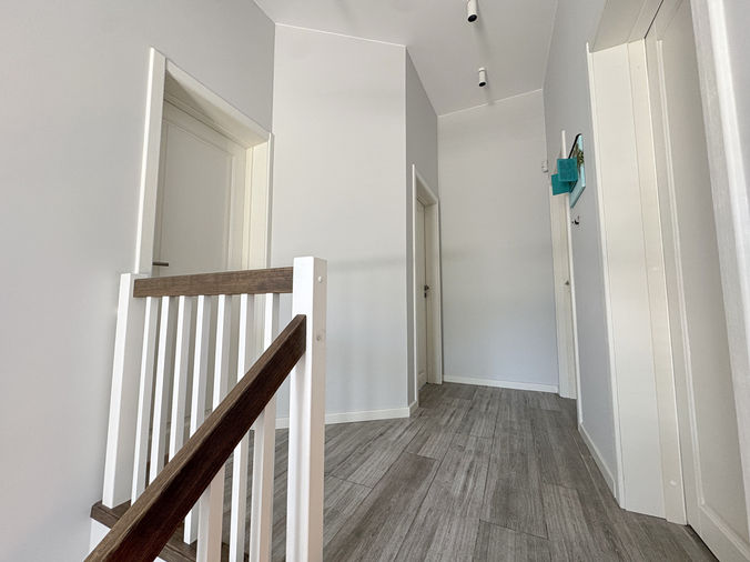 • Antrame aukšte – trys miegamieji (15,43 / 15,65 / 19,44 kv. m), erdvus vonios kambarys ir galimybė įsirengti serverinę ar darbo zoną viename iš kambarių.